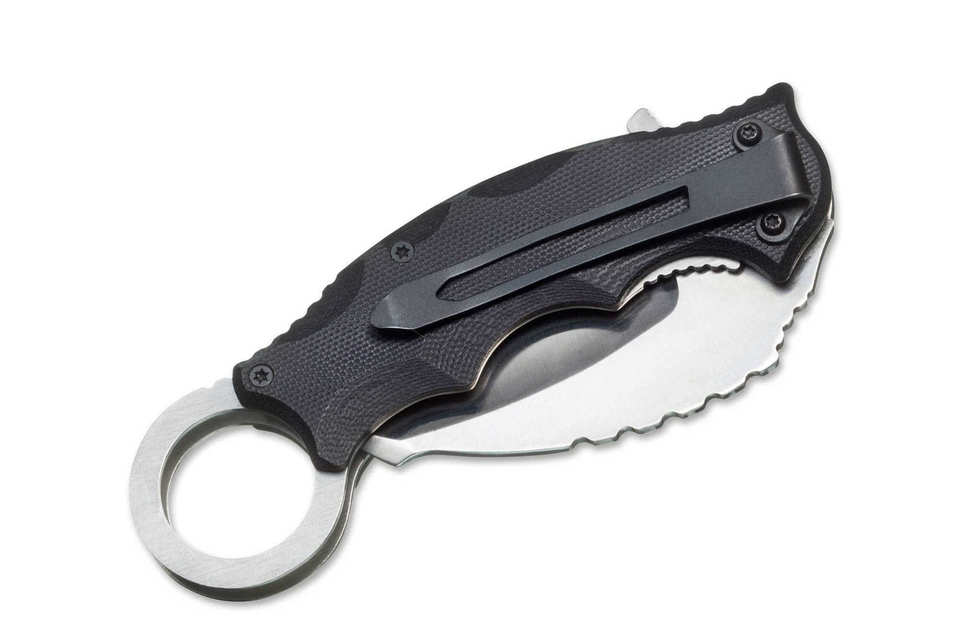 The Magnum Alpha Kilo is an original karambit that should not be missing in any collection of oriental knives. The spring-assisted blade made of 440A can be opened quickly and easily with the flipper, while a sturdy linerlock locks the blade securely in place. The pleasantly structured handle made of G10 fits very comfortably in the hand. With clip (tip-down/r) and characteristic handle ring.