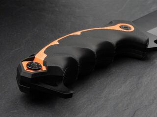 The reliable Magnum Chainsaw Backup Machete with a straight blade made of coated 420 in this version, is particularly popular in South America. The robust machete does not leave its owner in the lurch even in the tropical rainforest and is a serious forestry tool for limbing and young growth maintenance. The solid flat-angled construction with four screwed rubberised handle scales lies comfortably in the hand, while the optimum balance of the blade thickness and the length as well as the ergonomic handle design allow fatigue-free work. The lug on the handle doubles as a lanyard hole. A robust, lined nylon sheath with a double push-button lock protects both the machete and its wearer.
