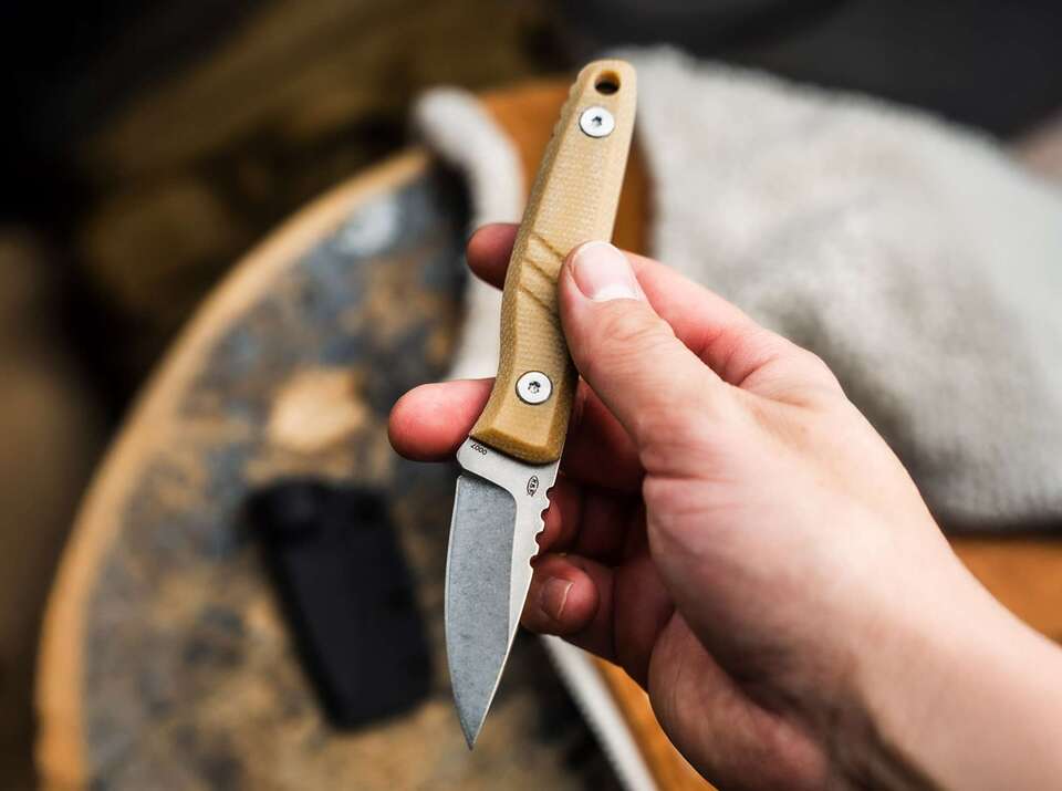 Compact, legal, and uncompromising, the Boker Plus Five Point Nine delivers full performance in a remarkably small fixed-blade format. Despite its compact size, this knife is anything but modest. The full-tang construction, paired with a 440C drop-point blade featuring a rugged stonewash finish, gives this small powerhouse the strength and reliability of much larger knives. Light brown Micarta handle scales provide excellent grip and a warm, tactile feel.
