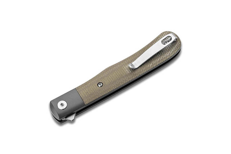 The legacy of a classic - timelessly traditional - traditionally timeless and interpreted in a contemporary way by the Boker Plus. The original Trapper owes its name to the trappers who roamed the forests, hunting in North America. The design of the knife dates back to the 19th century and is characterized by its slim lines and the characteristic upper and lower bolsters on the handle. The Boker Plus Modern Trapper Uno does without with the rear bolster and uses a titaniumcoated front bolster with handle scales made of grey Micarta that are pleasant to the touch. Instead of a nail nick and slipjoint, the gentleman's knife uses a flipper and liner lock to open and lock the ball-bearing drop-point blade made from Nitro-V. The flat pivot screw, the brushed satin two-tone finish of the blade and the elegant tip-up clip (r) round off the tidy look of the pocket-knife in a stylish way. Classic can be this modern!