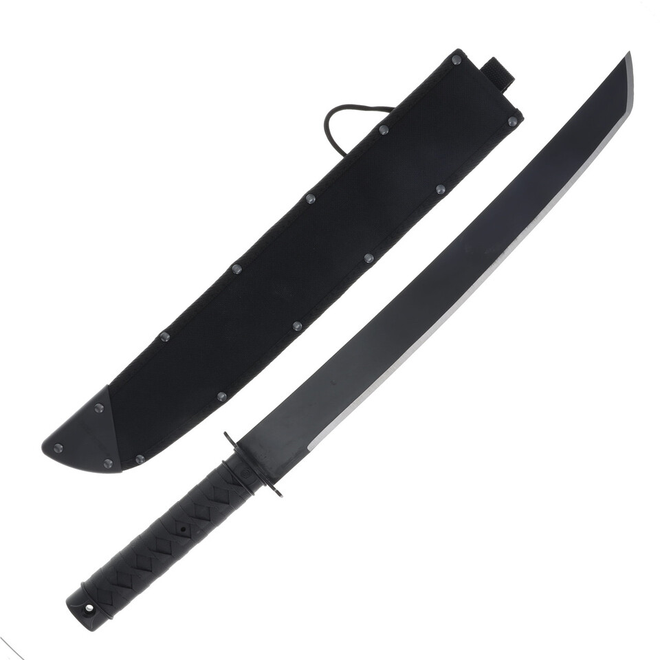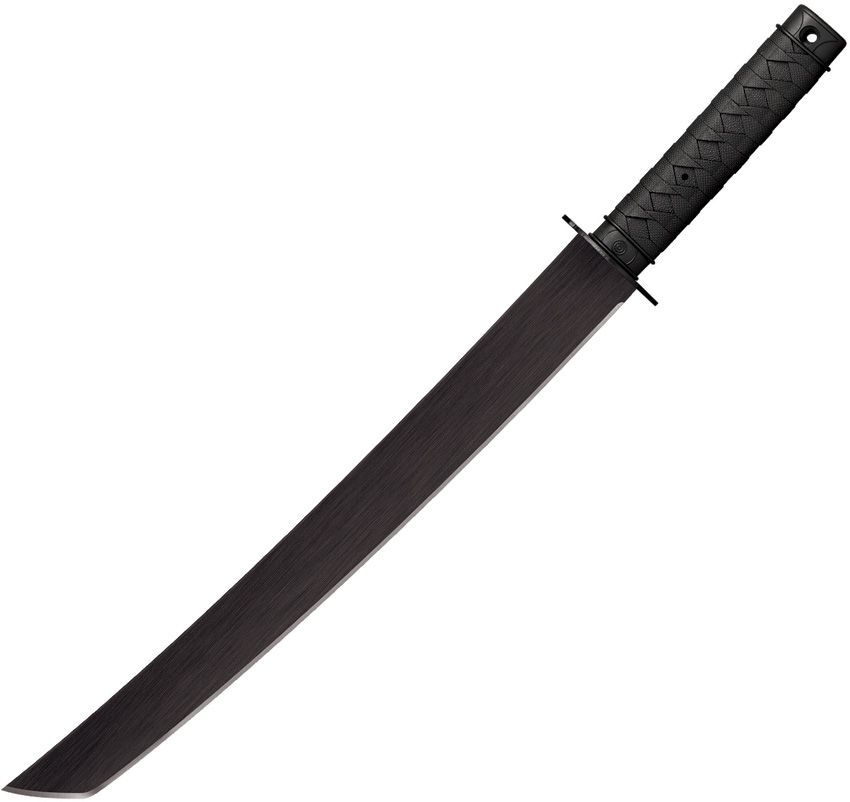 This Tactical Wakizashi Machete has an 46cm tanto blade with a black anti-rust finish. Cold Steel's Tactical Series of machetes was inspired by the Warrior Series Tantos, Wakizashis, and Katanas. This new tactical line offers improved strength and sharpness with high-grade materials and streamlined tactical design. The blade and tsuba are made from solid 1055 high carbon steel for corrosion resistance and edge retention. Injection molded full tang handles provide a secure grip that is extremely weather resistant. They recreated the traditional Fuchi and Kashira cord wrapped handle with a durable polypropylene that will never warp, tarnish, or rot. A Cor-Ex sheath rounds out the impressive tactical design.