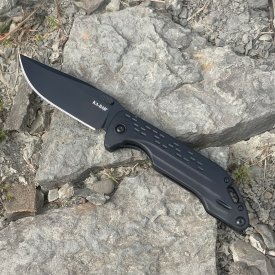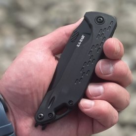 The KA-BAR 3072T Warthog Flipper Folding Knife is a modernized version of a long-standing favourite, built to perform in everyday carry, worksite, and outdoor settings. Equipped with a high-performance D2 steel blade, this folder delivers excellent edge retention and cutting strength. Its ergonomic Glass Filled Nylon (GFN) handle provides a lightweight yet durable grip, complemented by an upgraded flipper mechanism with smooth bearing action.
